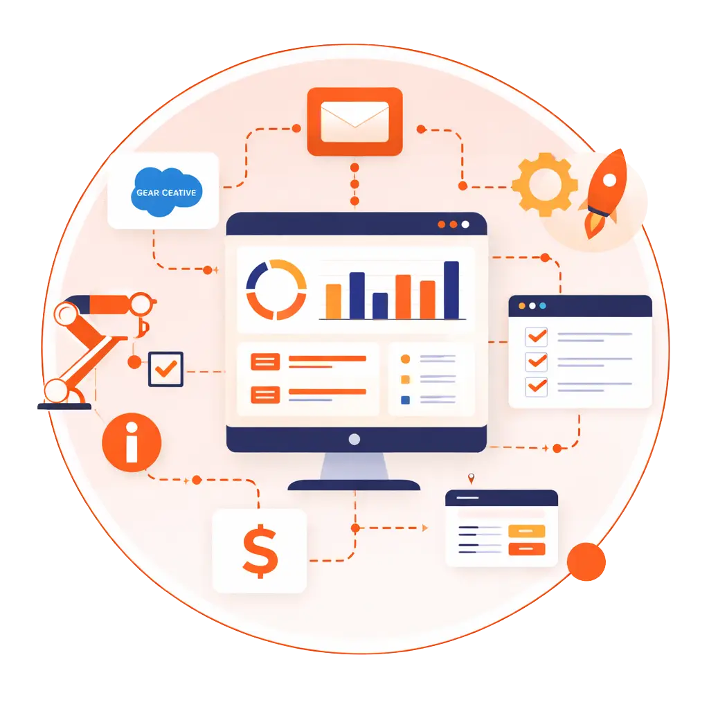 Geared Creative is a CRM and automation consultancy helping businesses simplify complexity, improve data quality, and build scalable systems. With deep experience across Salesforce, HubSpot, Sellfire, and revenue operations, we focus on practical solutions that support real-world growth, not one-size-fits-all implementations.